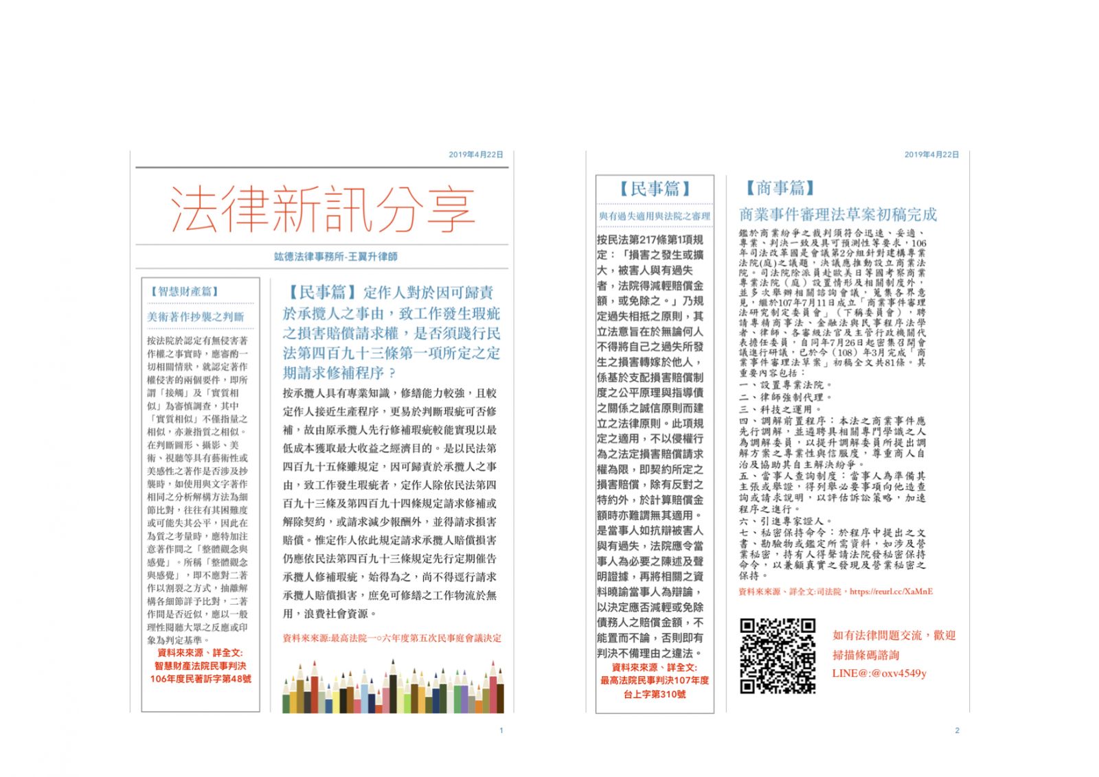 「我們將不定期發佈法律相關問題與您分享」